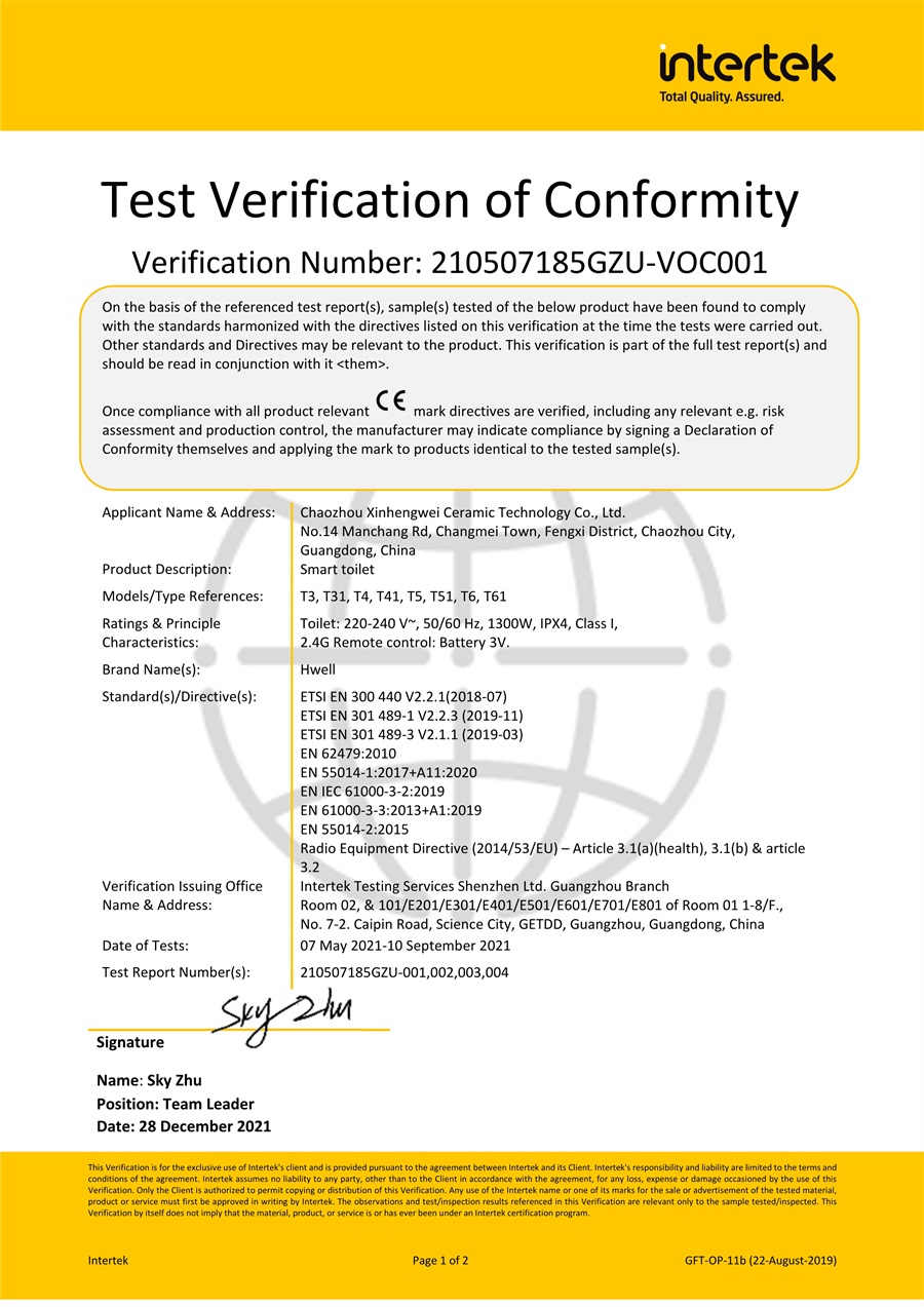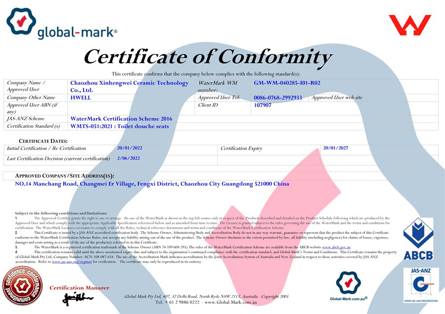 Established in 2010, Chaozhou Hengwei Ceramics Technology Co., Ltd. is a company specializing in the research, development, sales and service of smart toilet and smart toilet cover, covering an area of 30,000 square meters. We are committed to strict quality control and customer service to ensure customer satisfaction.