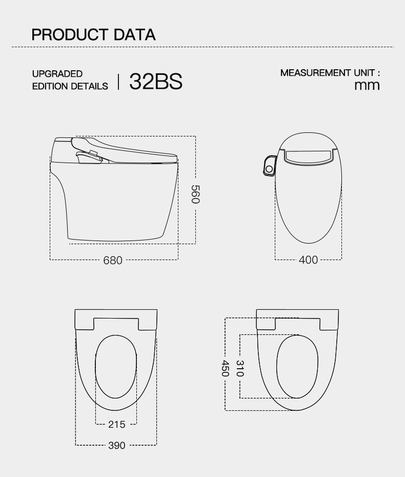 [CHAIR HEIGHT DESIGN]: 17-3/8’’ height from floor to bowl, this smart toilet with considerate height design not only meets the ADA standards but also perfect for people with poor knees or difficulty getting up/down, bringing comfort and health.