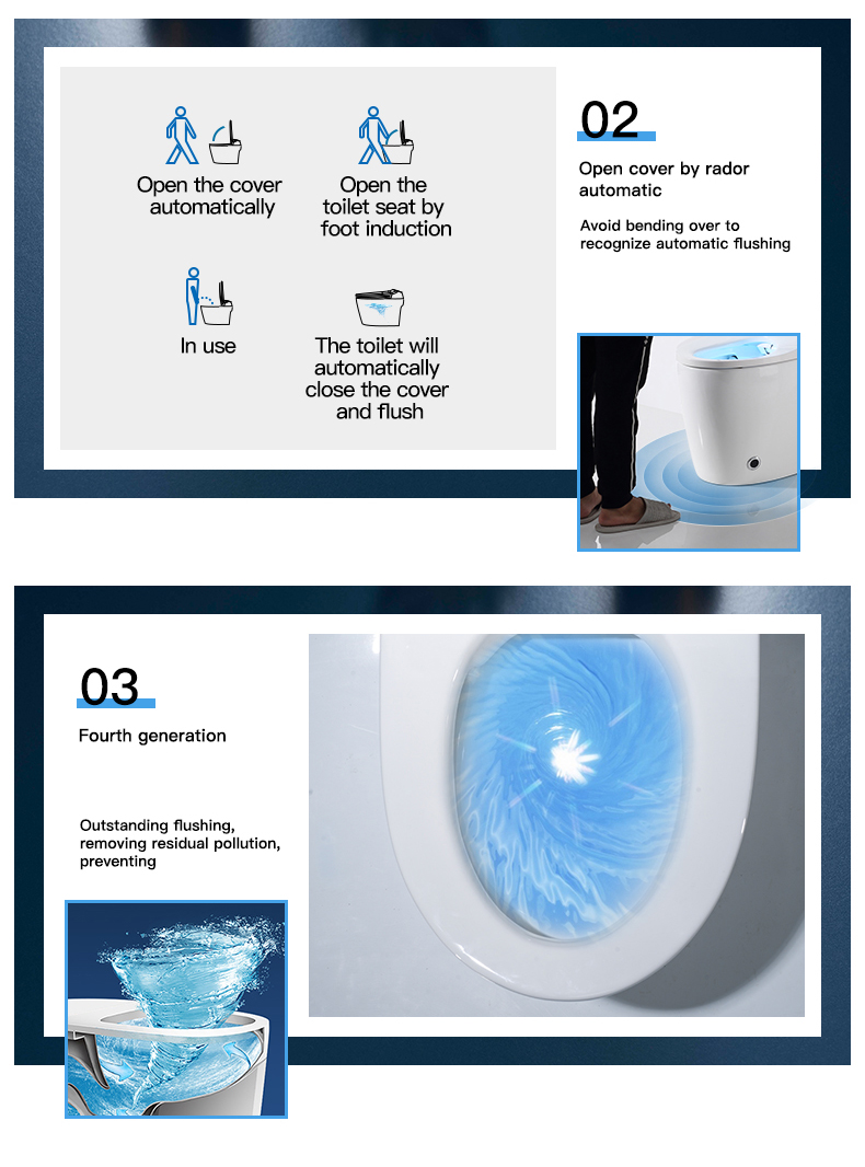 [SMART SENSING AUTO OPENING/CLOSING]: Toilet lid automatically opens and closes when one approaches or leaves, which meets the hands-free standard and is considered more hygienic compared to other toilets.