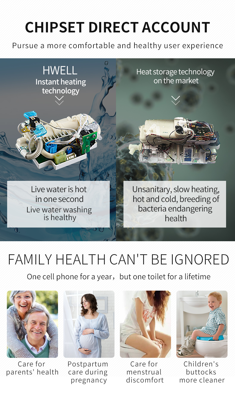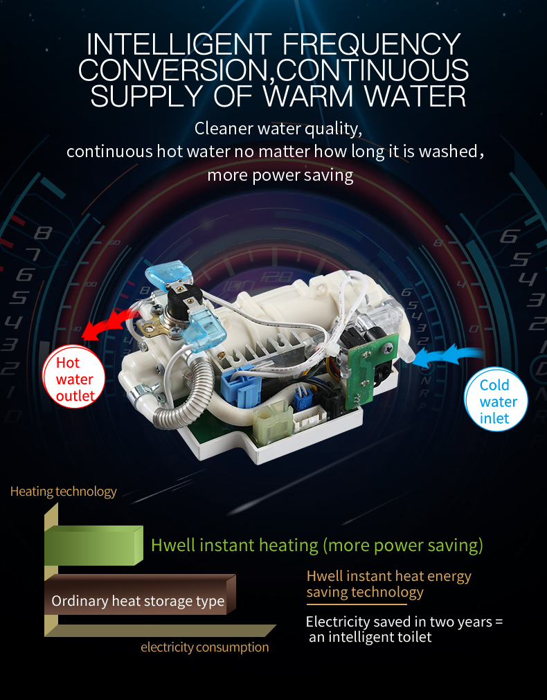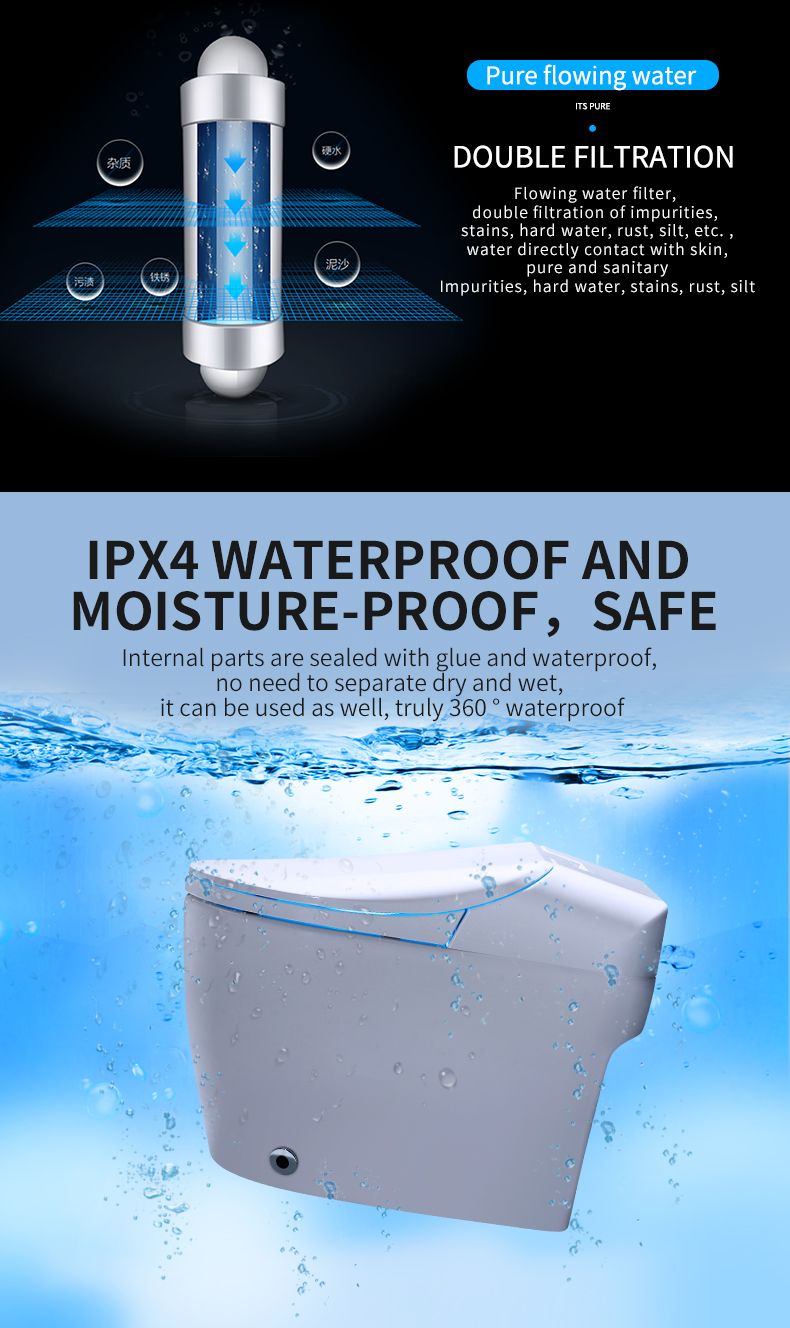 [SMART SENSING AUTO OPENING/CLOSING]: Toilet lid automatically opens and closes when one approaches or leaves, which meets the hands-free standard and is considered more hygienic compared to other toilets.
