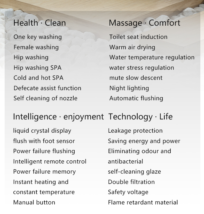 [AUTOMATIC FLUSH ]: When the auto flush function is turned on, it will automatically flush after detecting user departs from the seat, which is a hands-free operation.