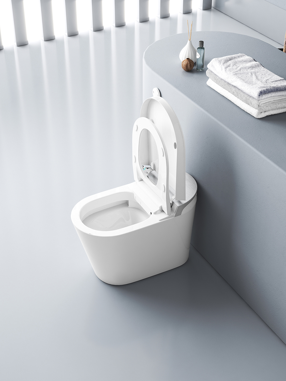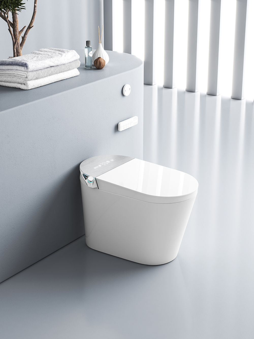 [SMART SENSING AUTO OPENING/CLOSING]: Toilet lid automatically opens and closes when one approaches or leaves, which meets the hands-free standard and is considered more hygienic compared to other toilets.