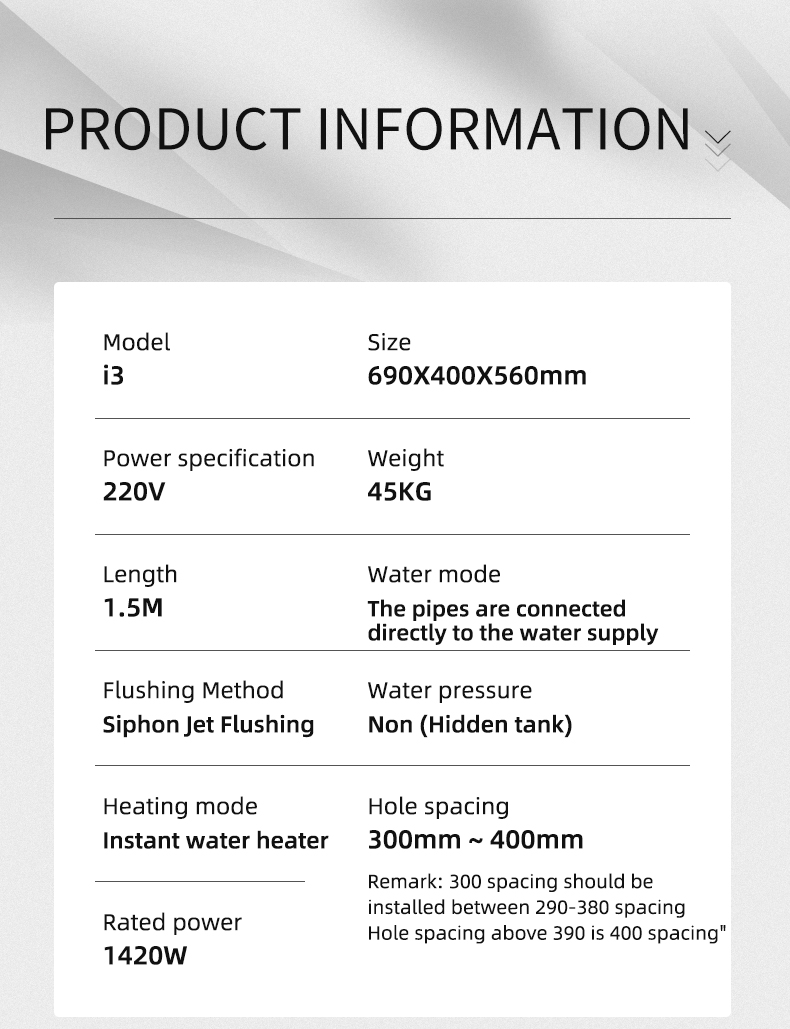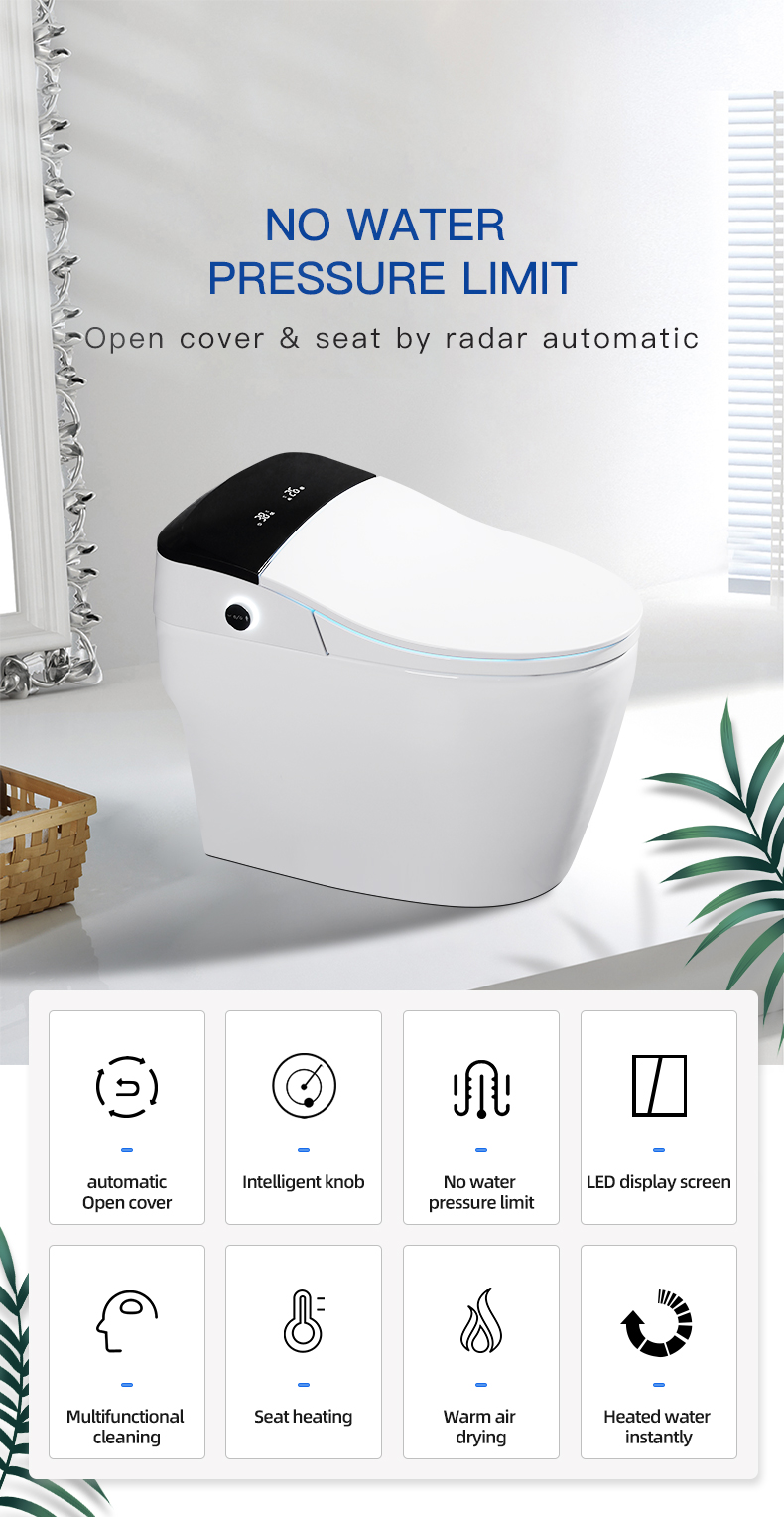 [SMART SENSING AUTO OPENING/CLOSING]: Toilet lid automatically opens and closes when one approaches or leaves, which meets the hands-free standard and is considered more hygienic compared to other toilets.