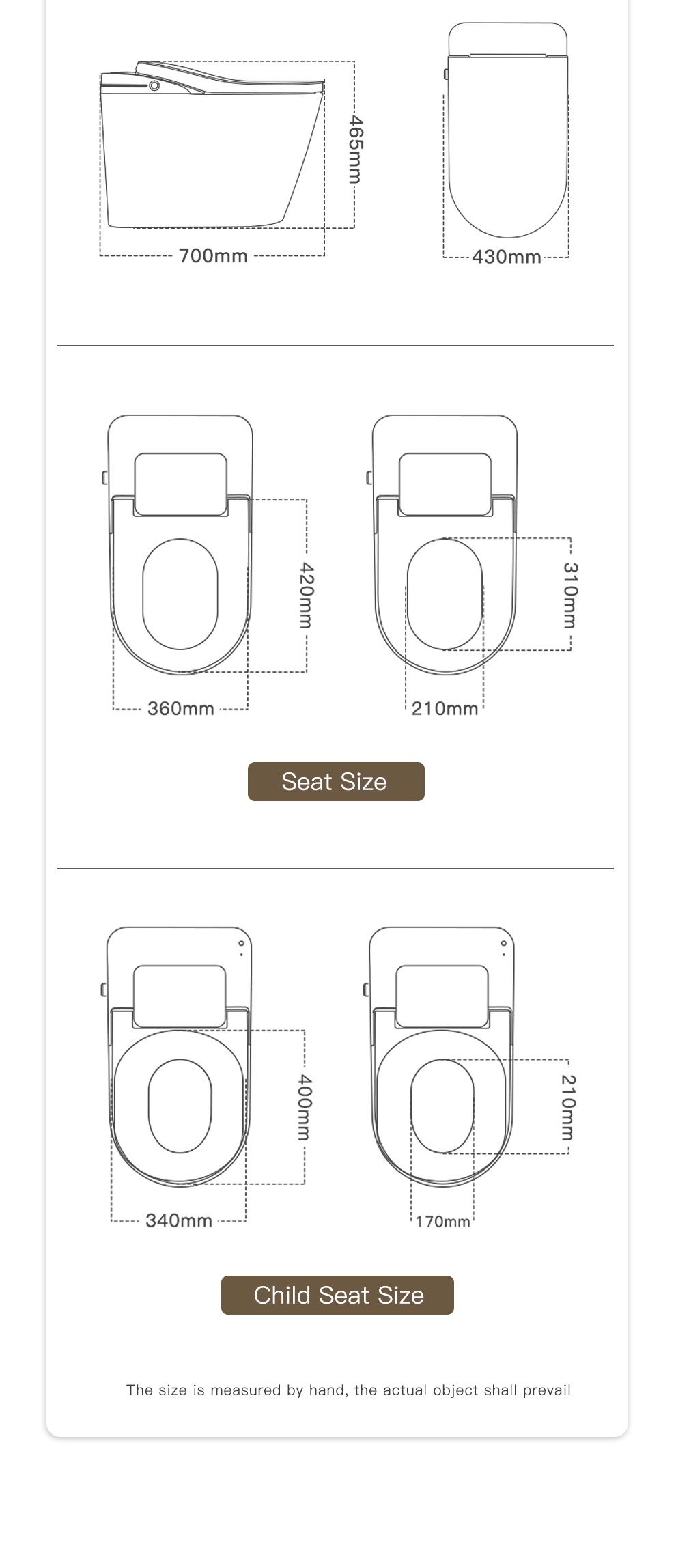 [CHAIR HEIGHT DESIGN]: 17-3/8’’ height from floor to bowl, this smart toilet with considerate height design not only meets the ADA standards but also perfect for people with poor knees or difficulty getting up/down, bringing comfort and health.
