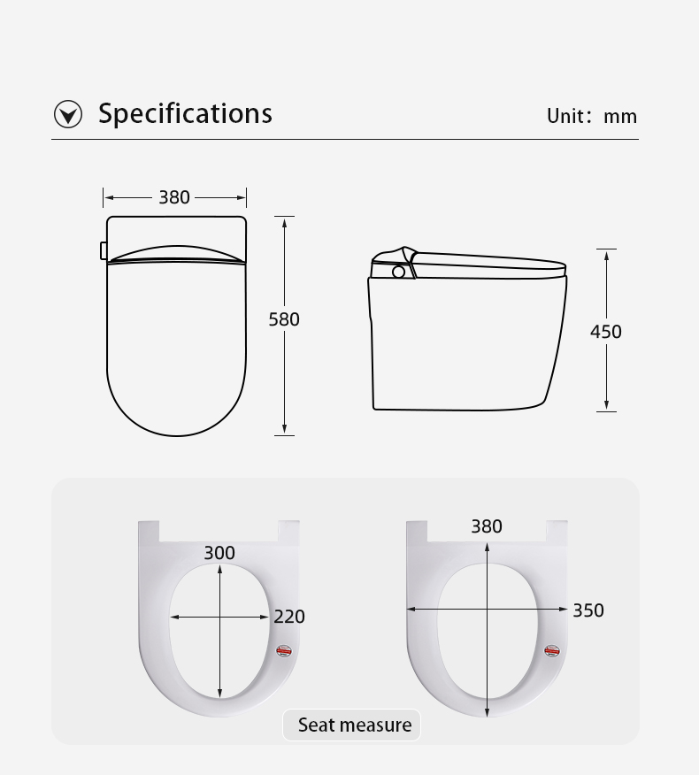 [CHAIR HEIGHT DESIGN]: 17-3/8’’ height from floor to bowl, this smart toilet with considerate height design not only meets the ADA standards but also perfect for people with poor knees or difficulty getting up/down, bringing comfort and health.