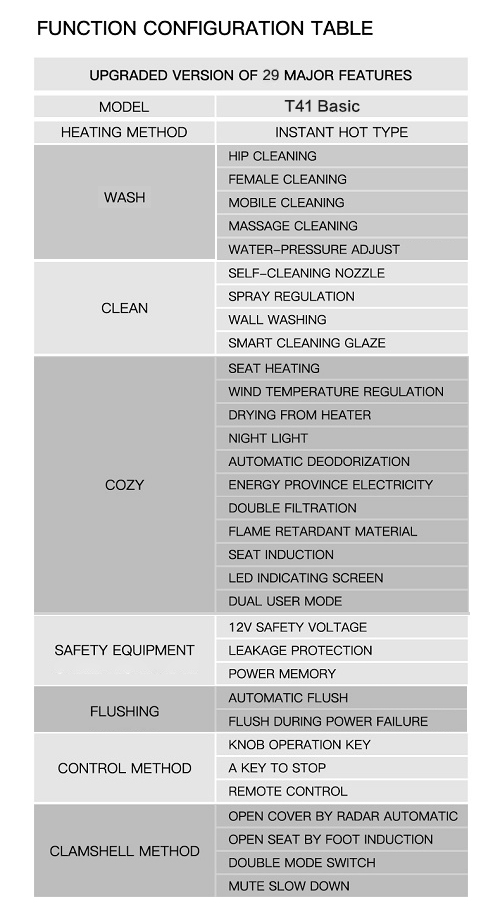 [SMART SENSING AUTO OPENING/CLOSING]: Toilet lid automatically opens and closes when one approaches or leaves, which meets the hands-free standard and is considered more hygienic compared to other toilets.