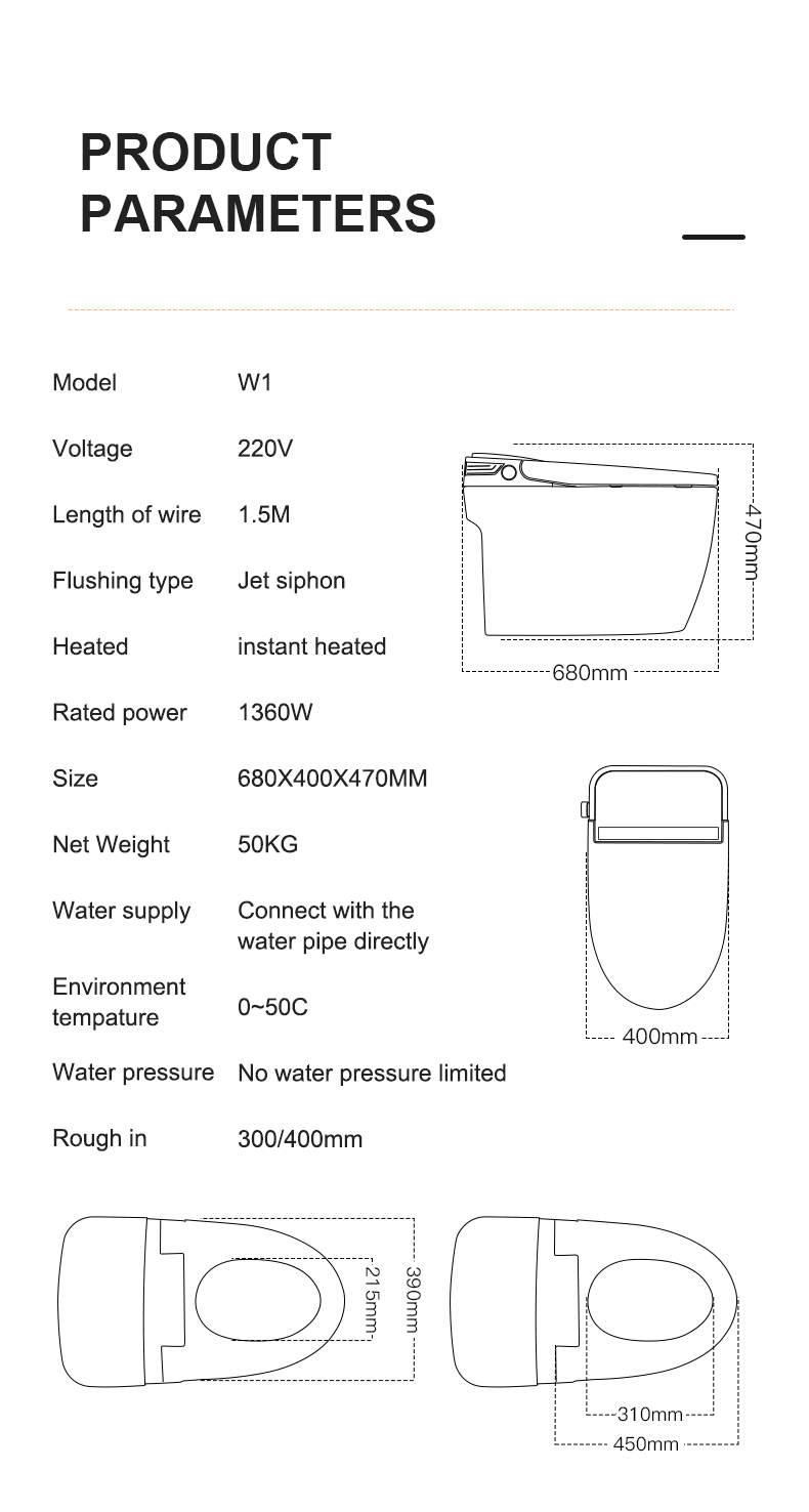 [CHAIR HEIGHT DESIGN]: 17-3/8’’ height from floor to bowl, this smart toilet with considerate height design not only meets the ADA standards but also perfect for people with poor knees or difficulty getting up/down, bringing comfort and health.