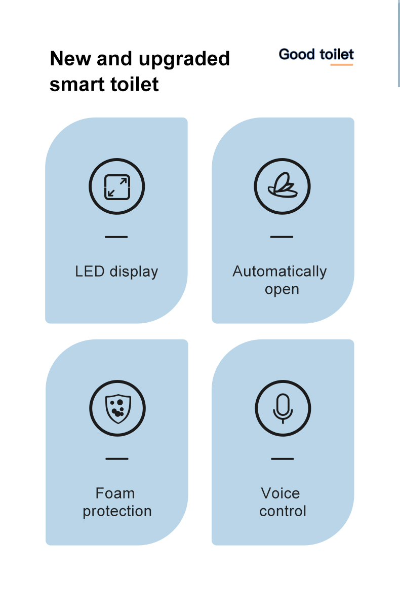 [SMART SENSING AUTO OPENING/CLOSING]: Toilet lid automatically opens and closes when one approaches or leaves, which meets the hands-free standard and is considered more hygienic compared to other toilets.