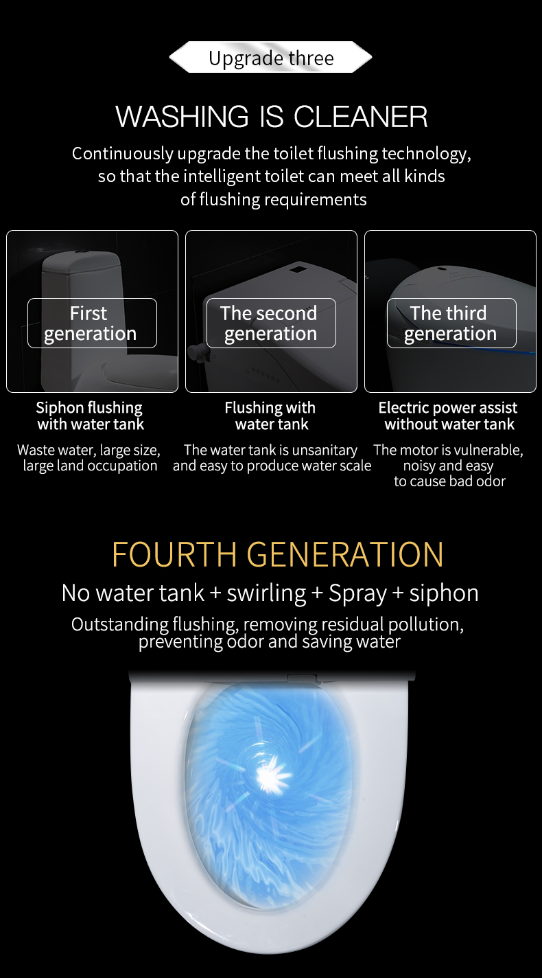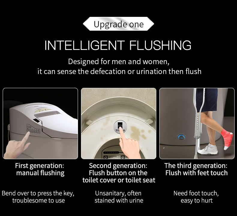 [SMART SENSING AUTO OPENING/CLOSING]: Toilet lid automatically opens and closes when one approaches or leaves, which meets the hands-free standard and is considered more hygienic compared to other toilets.