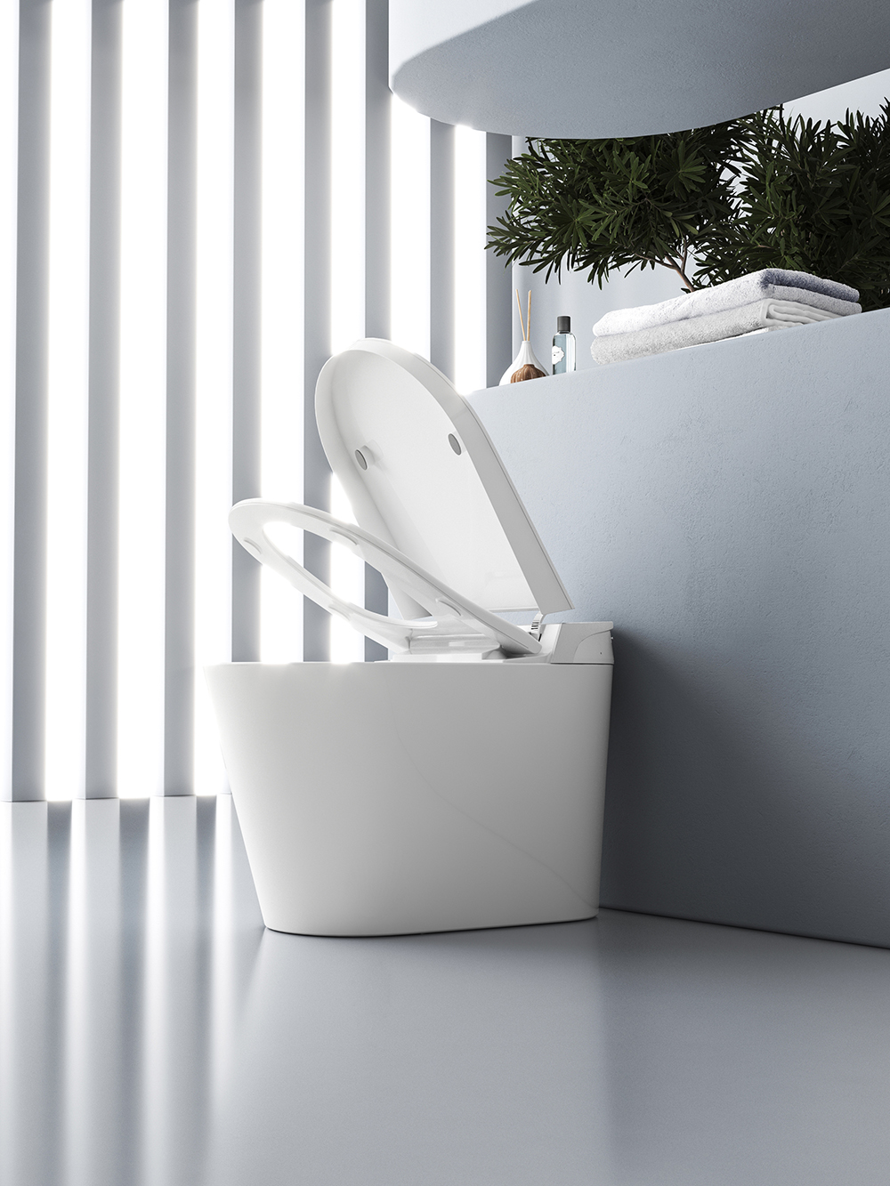 [SMART SENSING AUTO OPENING/CLOSING]: Toilet lid automatically opens and closes when one approaches or leaves, which meets the hands-free standard and is considered more hygienic compared to other toilets.