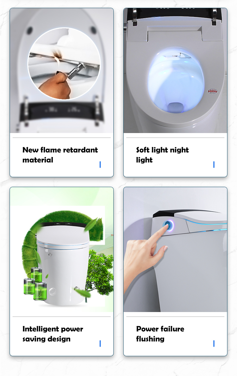 [SMART SENSING AUTO OPENING/CLOSING]: Toilet lid automatically opens and closes when one approaches or leaves, which meets the hands-free standard and is considered more hygienic compared to other toilets.