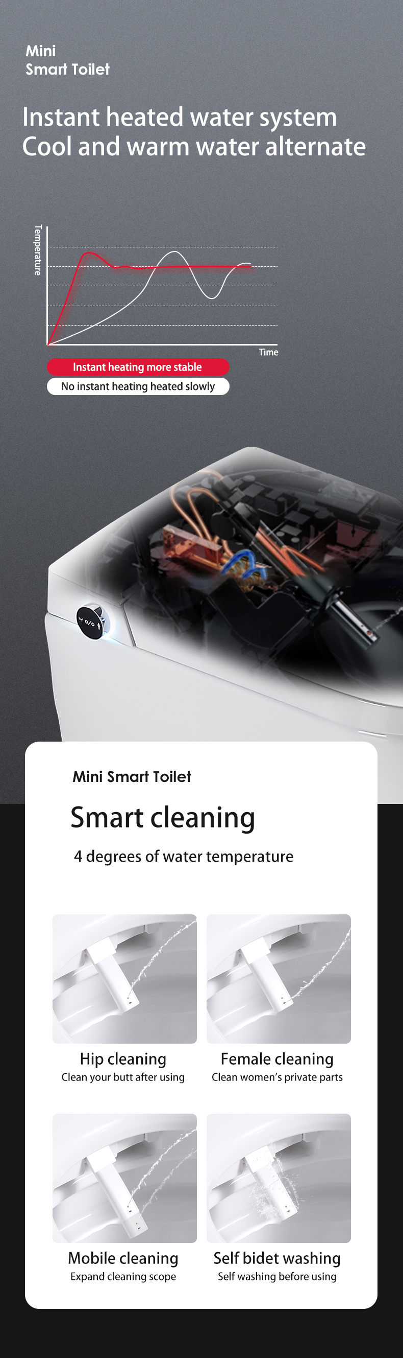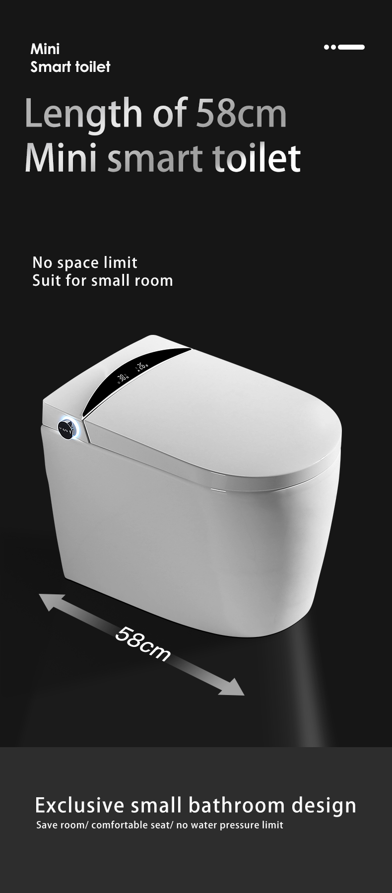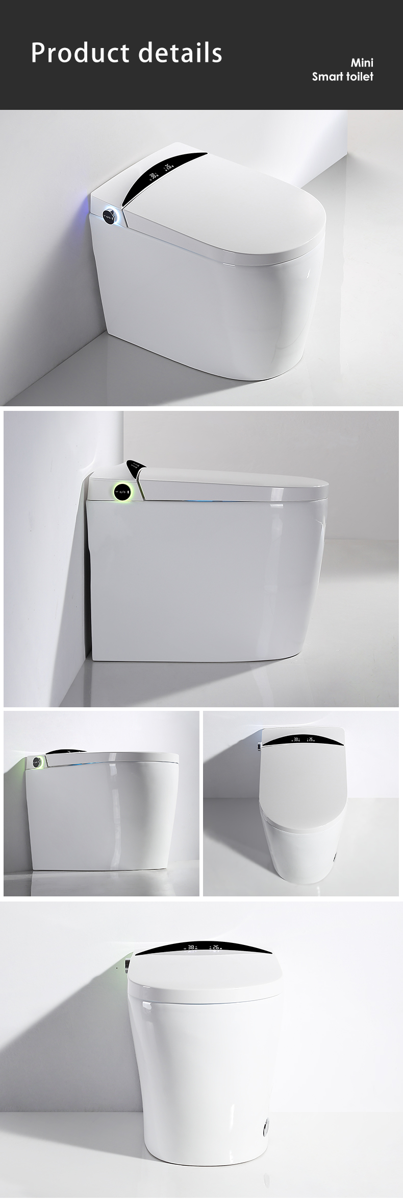 [SMART SENSING AUTO OPENING/CLOSING]: Toilet lid automatically opens and closes when one approaches or leaves, which meets the hands-free standard and is considered more hygienic compared to other toilets.