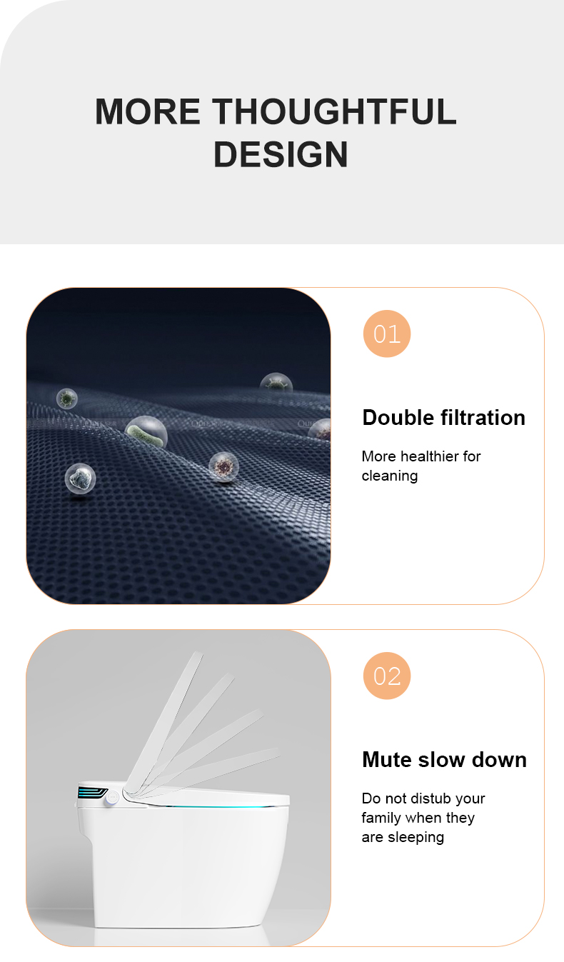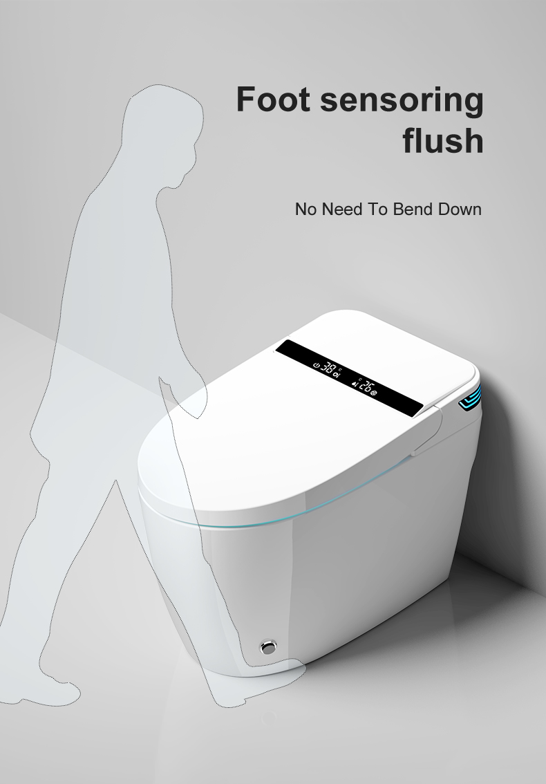 [SMART SENSING AUTO OPENING/CLOSING]: Toilet lid automatically opens and closes when one approaches or leaves, which meets the hands-free standard and is considered more hygienic compared to other toilets.